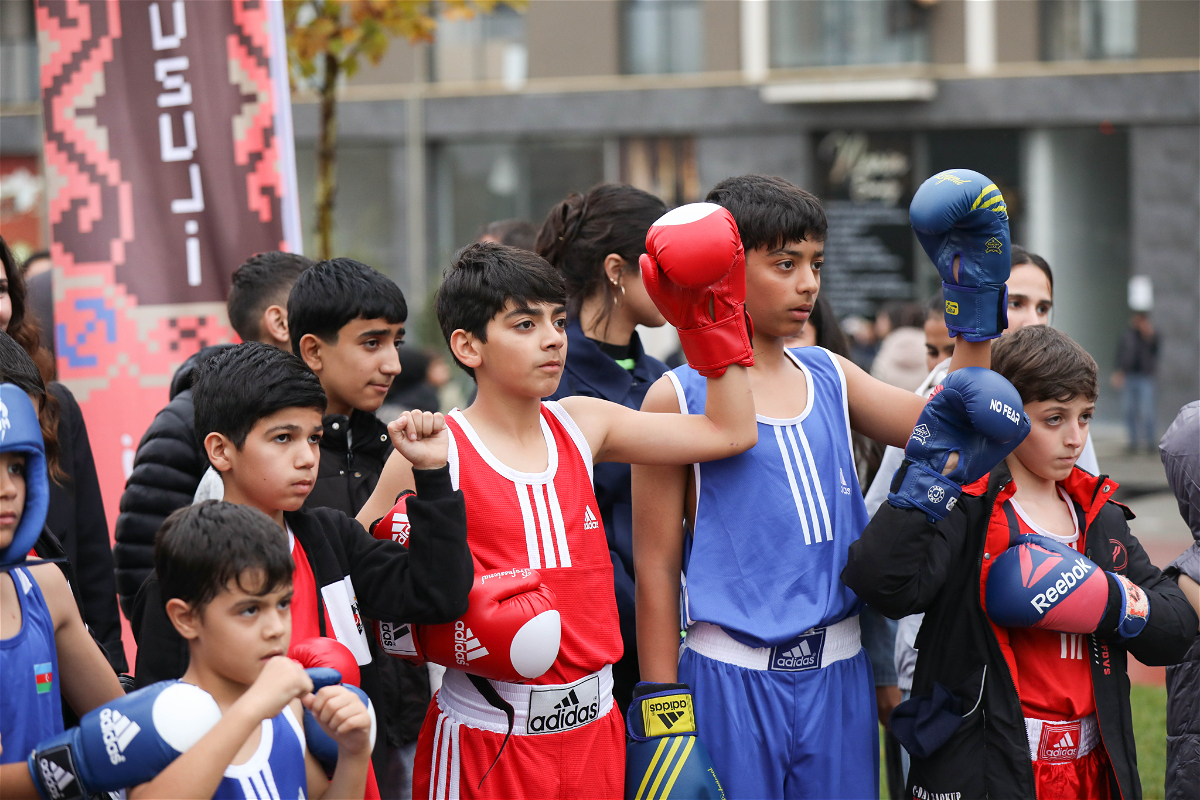 Several folk dances presented by the Azerbaijan State Song and Dance Ensemble were greeted with applause. Young athletes demonstrated their skills in the square.