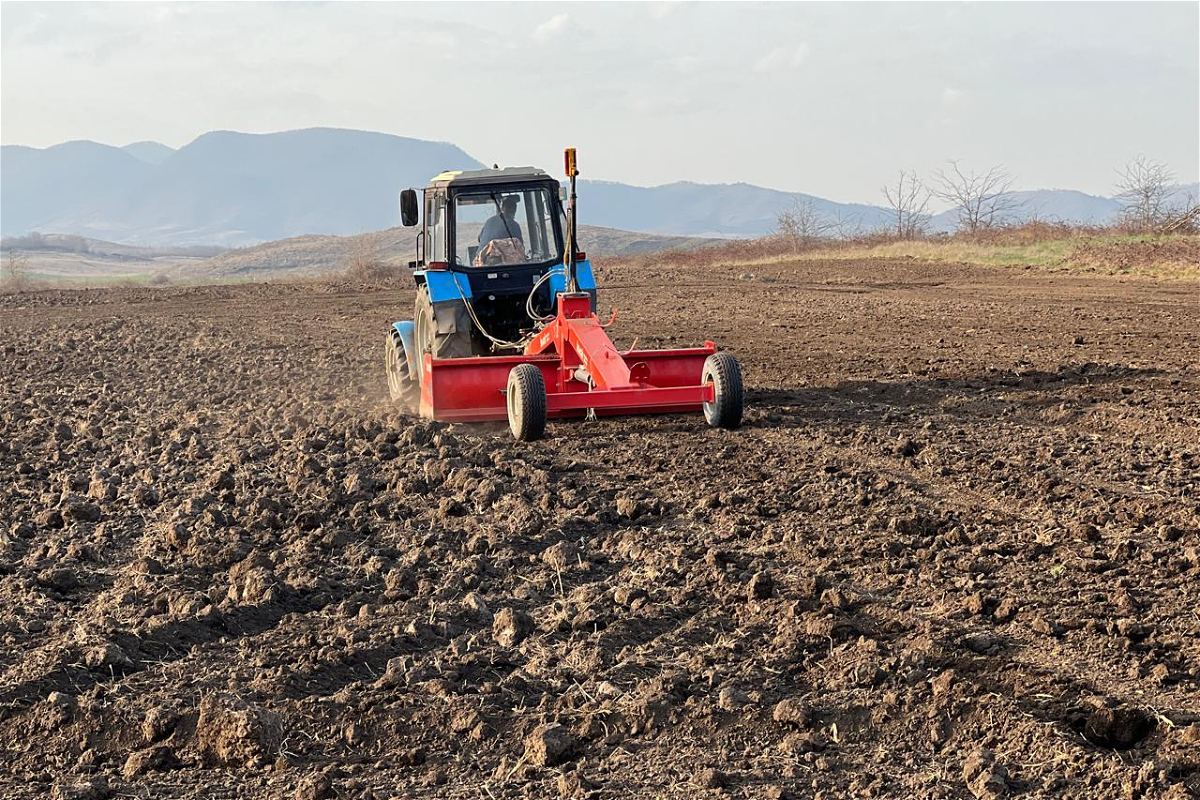 Currently, the work on ploughing, treatment, and clearing the area of weeds is underway.