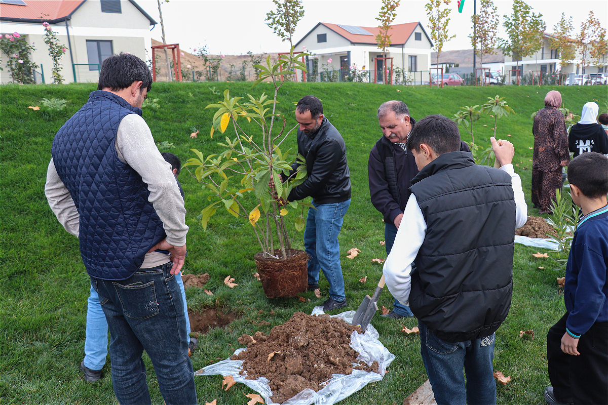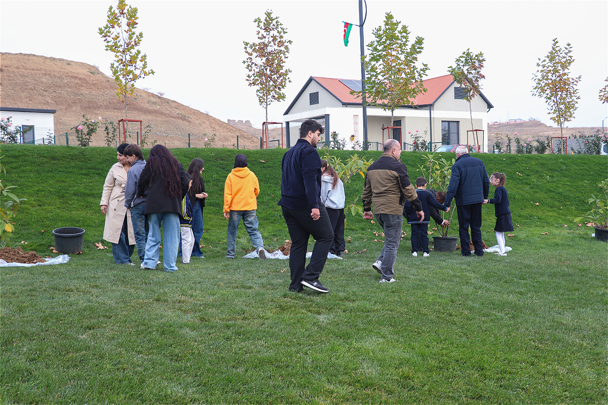 Daha sonra aksiya iştirakçıları müxtəlif növlü ağacları kənd parkının ərazisində əkiblər.