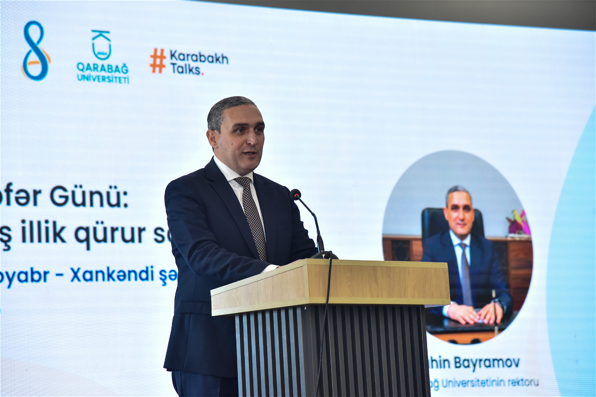 Tədbirdə açılış nitqi ilə çıxış edən Qarabağ Universitetinin rektoru Şahin Bayramov bu il xalqımızın qürur və şərəf simvoluna çevrilmiş Zəfər Gününün beşinci ildönümünün qeyd olunduğunu vurğulayaraq, Qarabağ bölgəsində təhsilin inkişafı, eləcə də insan kapitalının gücləndirilməsi istiqamətində görülən işlərdən danışıb.