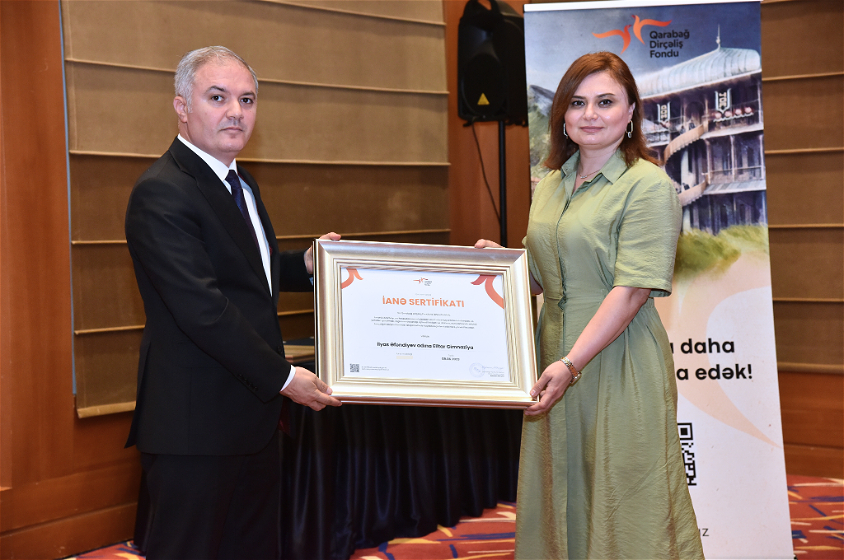 Çıxışlardan sonra Qarabağın bərpası və yenidən qurulması istiqamətində görülən işlərə dəstək göstərən donorlara - Veysəloğlu Şirkətlər Qrupunun Müşahidə Şurasının üzvü İlqar Nuriyə, Avrora Qrupun prezidenti Ceyhun Abbasova və İlyas Əfəndiyev adına Elitar Gimnaziyanın direktoru Səadət Cahandarovaya “İanə sertifikatı” təqdim olunub.
