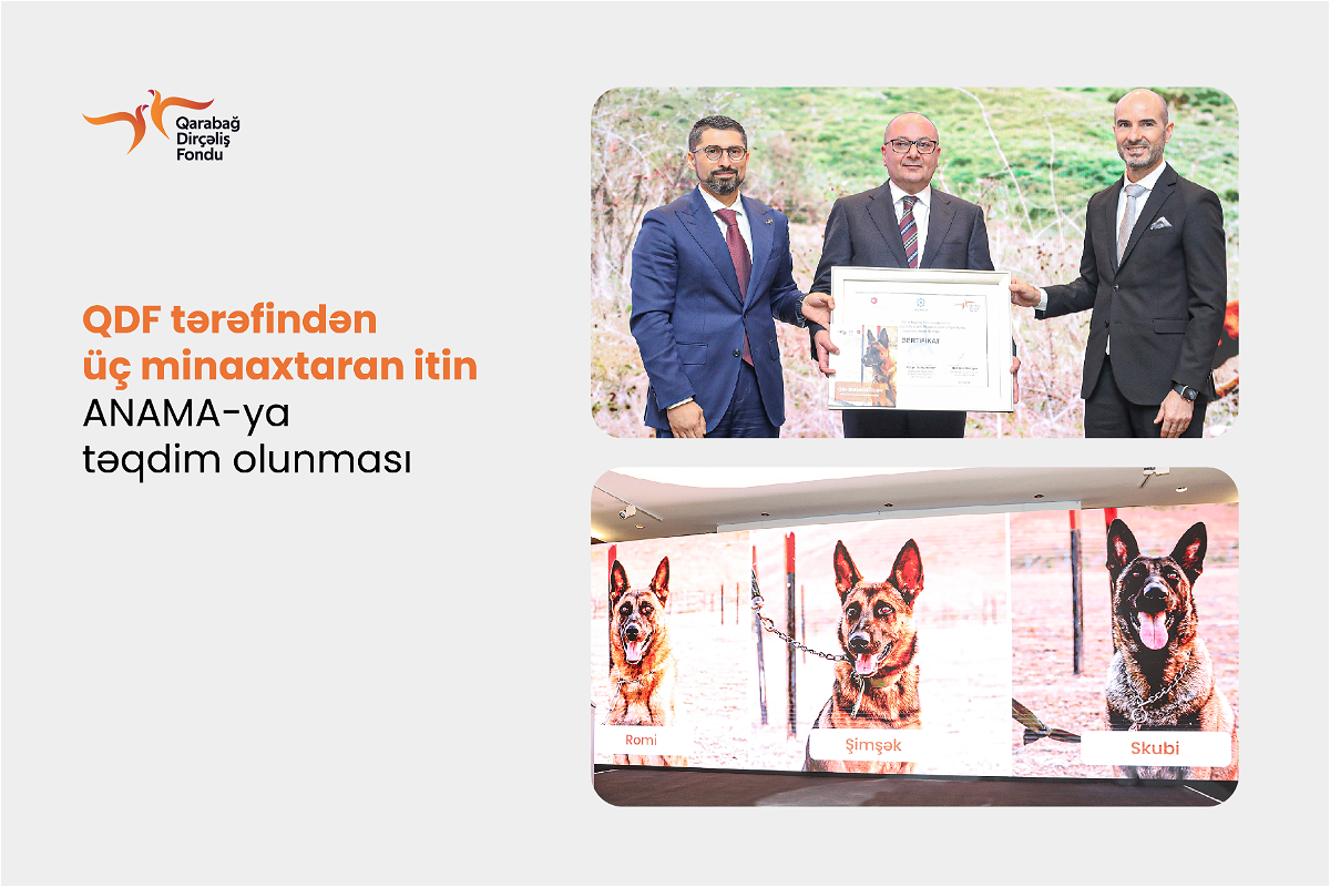 Fondun minatəmizləmə sahəsinə dəstəyi bununla da yekunlaşmır. “Azərlotereya” ASC ilə birlikdə Qarabağ Dirçəliş Fondu ANAMA-ya xüsusi təlim keçmiş üç minaaxtaran it də hədiyyə edib ki, bu da sahədə aşkarlama imkanlarını əhəmiyyətli dərəcədə genişləndirir. Hazırda adları Romi, Şimşək və Skubi olan itlər öz vacib missiyalarını icra etməyə davam edirlər.