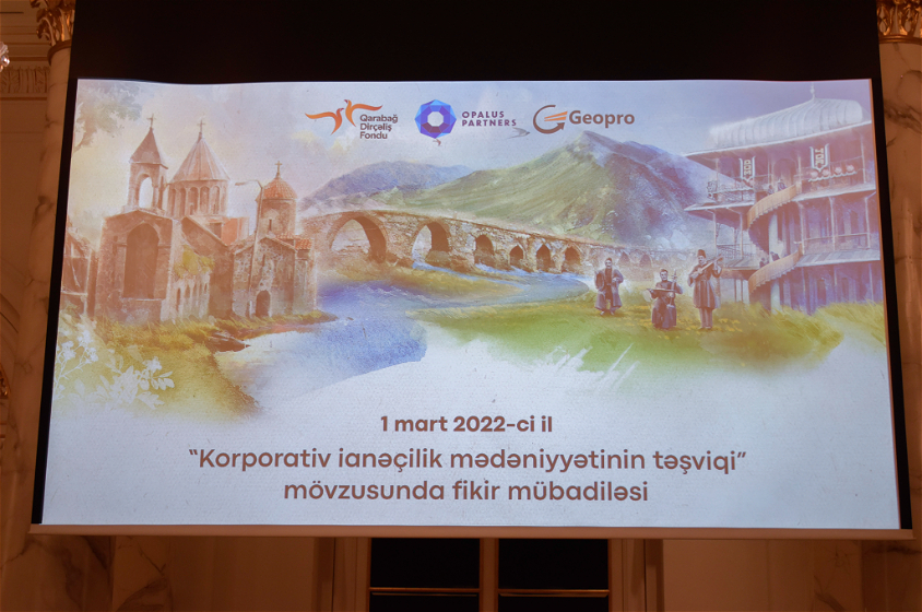 1 mart 2022-ci il tarixində Qarabağ Dirçəliş Fondu, “Opalus Partners Group” və “Geopro” şirkətlərinin birgə təşkilatçılığı ilə işğaldan azad olunmuş ərazilərin bərpası və yenidən qurulmasına dəstək olmaq məqsədilə, “korporativ ianəçilik mədəniyyətinin təşviqi” mövzusunda fikir mübadiləsi görüşü keçirilib.