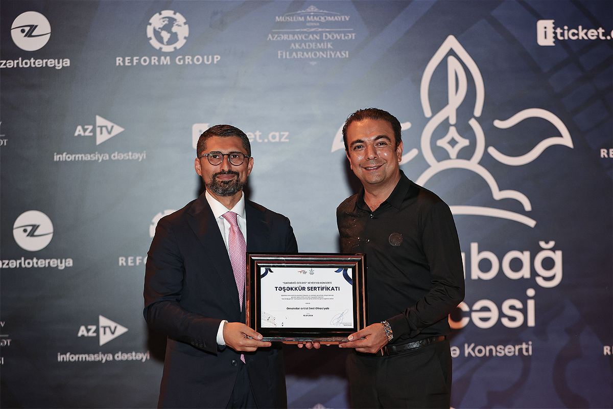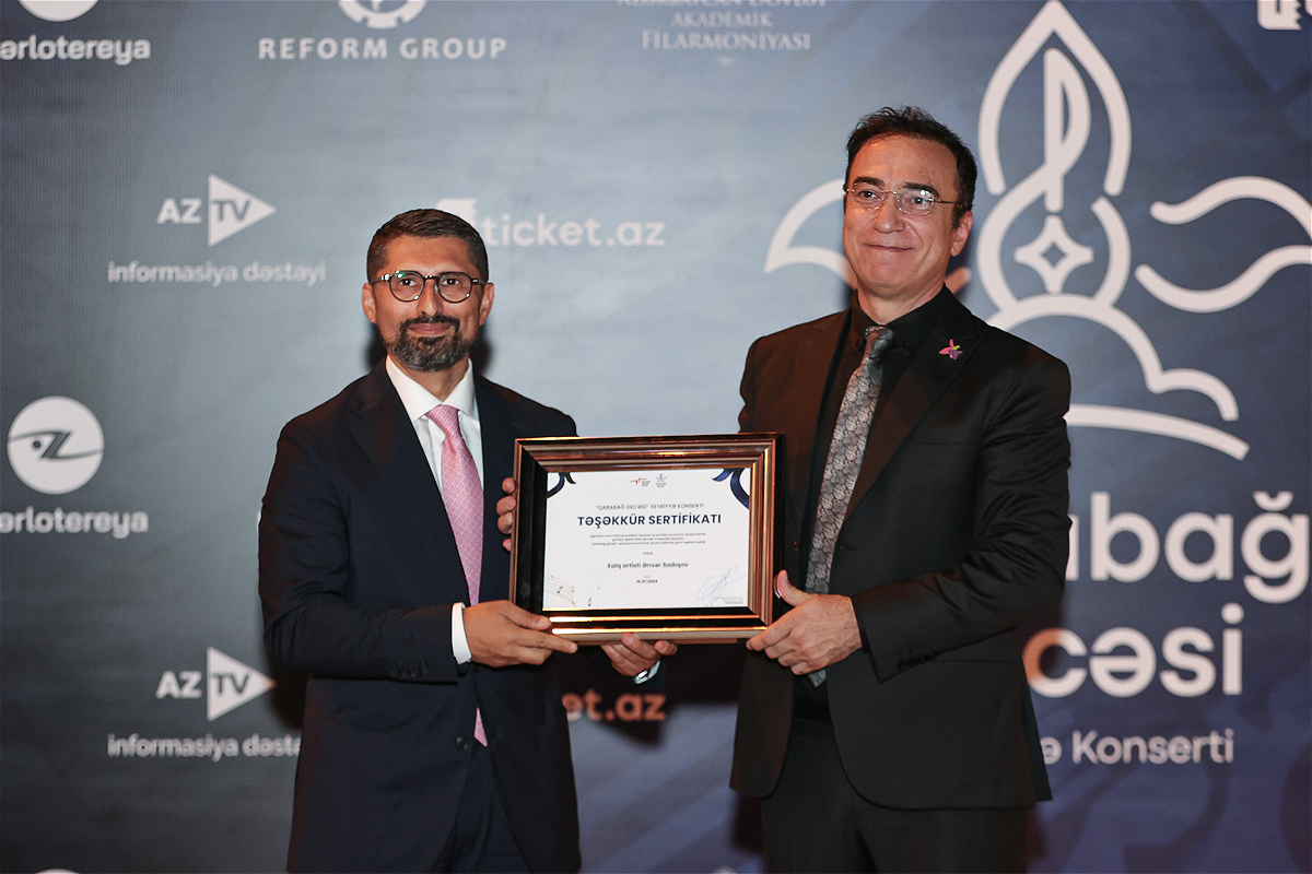 Rəsmi ziyafətdə konsertin ərsəyə gəlməsində həmrəylik nümayiş etdirərək Qarabağ Dirçəliş Fonduna dəstək olan tərəfdaşlara və donorlara – Mədəniyyət Nazirliyinə, Müslüm Maqomayev adına Azərbaycan Dövlət Akademik Filarmoniyasına, “Azərlotereya” ASC-yə, “Reform Group” MMC-yə, “Azərbaycan Televiziya və Radio Verilişləri” QSC-yə, “iTicket Production” MMC-yə, “Avrora” MMC-yə, Veysəloğlu Şirkətlər Qrupuna, “McDonald’s Azərbaycan” QSC-yə, “Huner Group” MMC-yə, “Caspian Event Organisers” MMC-yə, “Bakı Metropoliteni” QSC-yə, eləcə də Xalq artisti Ənvər Sadıqova, Əməkdar artist Emil Əfrasiyaba, Əməkdar artist Ələkbər Ələkbərova və “Qaytağı” instrumental ansamblının üzvlərinə Qarabağ Dirçəliş Fondu adından xüsusi plaket və “Təşəkkür sertifikatı” təqdim olunub.