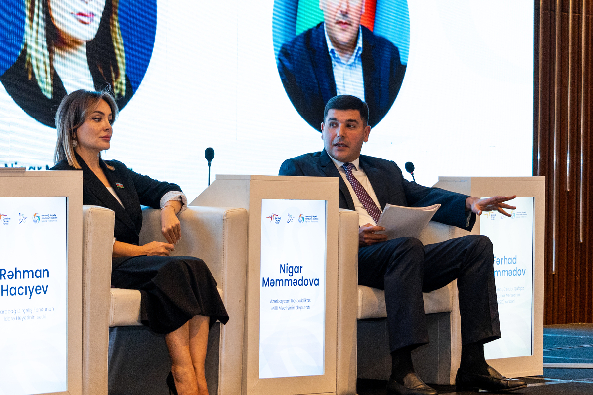 Qarabağ Dirçəliş Fondunun Fandreyzinq və kommunikasiya şöbəsinin müdiri Pərvin Bağırovanın moderatorluğu ilə keçən panel müzakirələri zamanı Azərbaycan Respublikası Prezidentinin iqlim məsələləri üzrə nümayəndəsi Muxtar Babayev “COP29 və davamlı perspektivlər: Qarabağın yaşıl transformasiya təcrübəsi”, Qarabağ Dirçəliş Fondunun İdarə Heyətinin sədri Rəhman Hacıyev “Dayanıqlı gələcəyin qurulmasında yaddaşın rolu”, Milli Məclisin deputatı Nigar Məmmədova “Qarabağın azadlığı və dirçəlişində dövlət-cəmiyyət birliyinin rolu” və Cənubi Qafqaz Tədqiqatlar Mərkəzinin rəhbəri, siyasi şərhçi Fərhad Məmmədov “44 günlük Vətən müharibəsinin regional geosiyasətə təsiri” mövzularında geniş təqdimatla çıxış ediblər.