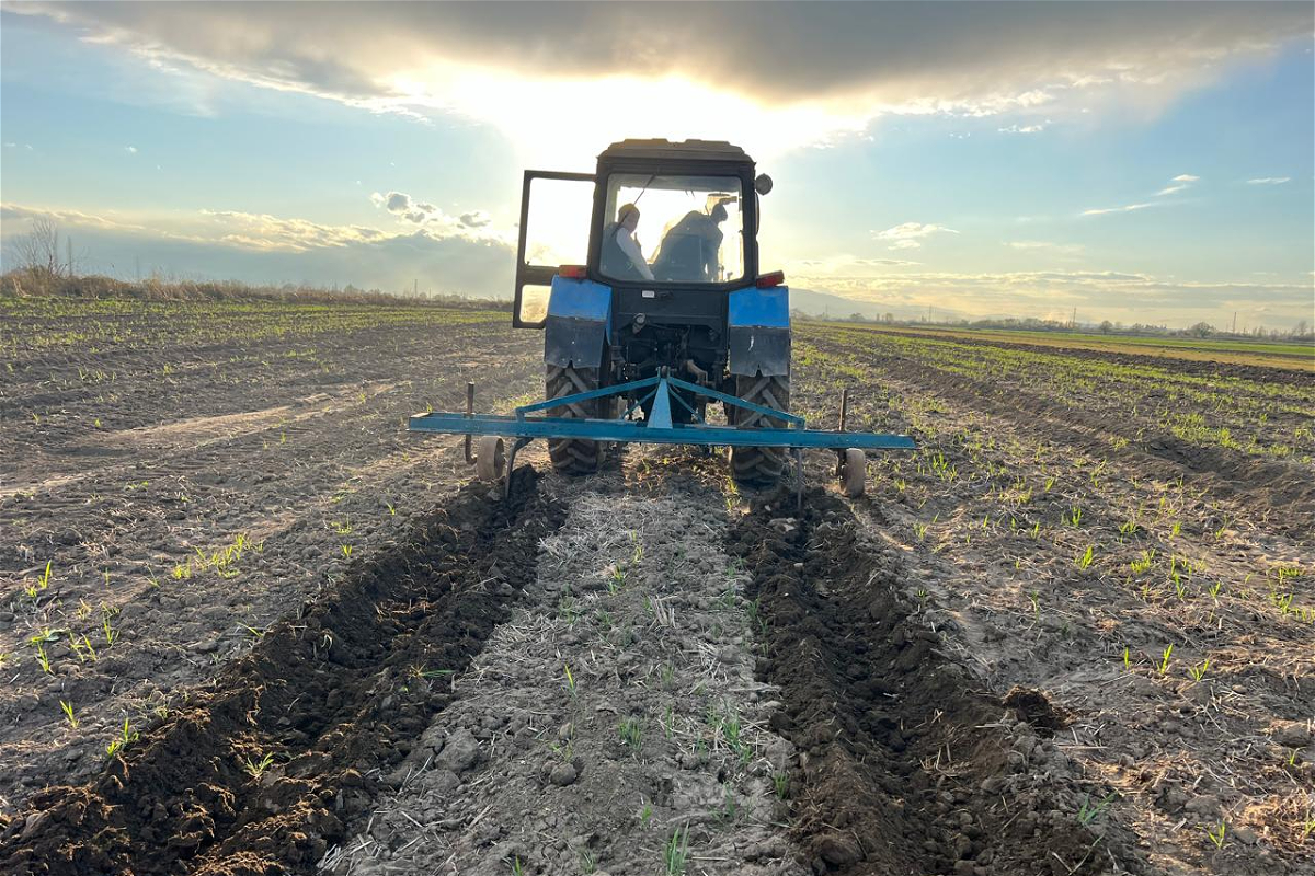 Hazırda ərazidə torpağın şumlanması, dərmanlanması və alaq bitkilərdən təmizlənməsi işləri icra olunur.