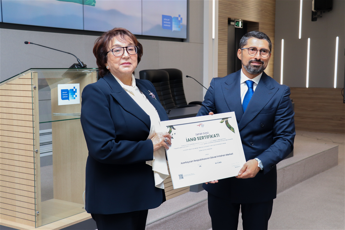 Tədbirin sonunda Qarabağ Dirçəliş Fondunun İdarə Heyətinin sədri Rəhman Hacıyev Dövlət İmtahan Mərkəzinin bütün kollektivinə göstərdikləri təşəbbüsə görə təşəkkür edib və qurumun İdarə Heyətinin sədri Məleykə Abbaszadəyə Fondun xüsusi “İanə Sertifikatı”nı təqdim edib.