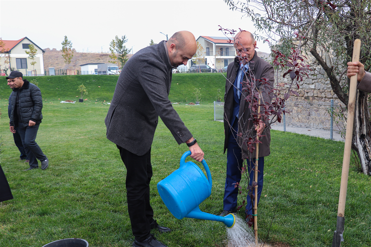 Daha sonra aksiya iştirakçıları müxtəlif növlü ağacları kənd parkının ərazisində əkiblər.